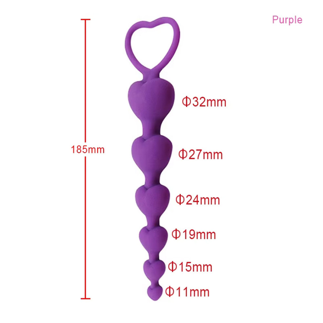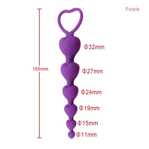 Kalp Şeklinde Boncuklu Silikon Pürüzsüz Yüzey 5 Boğumlu Anal Tıkaç (Plug) – Mor
