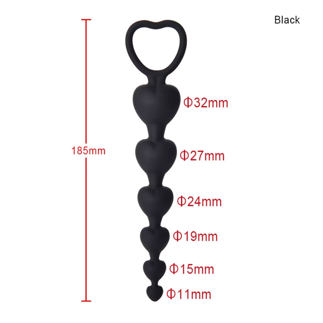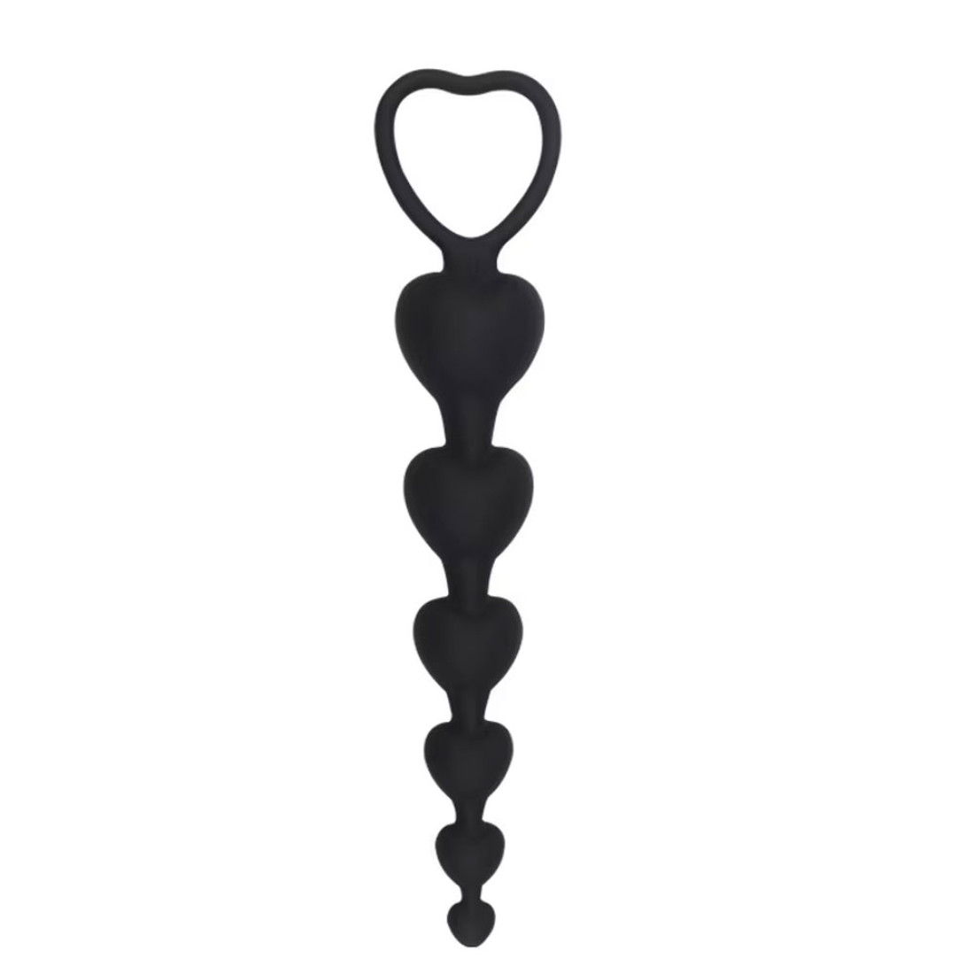 Kalp Şeklinde Boncuklu Silikon Pürüzsüz Yüzey 5 Boğumlu Anal Tıkaç (Plug) – Siyah